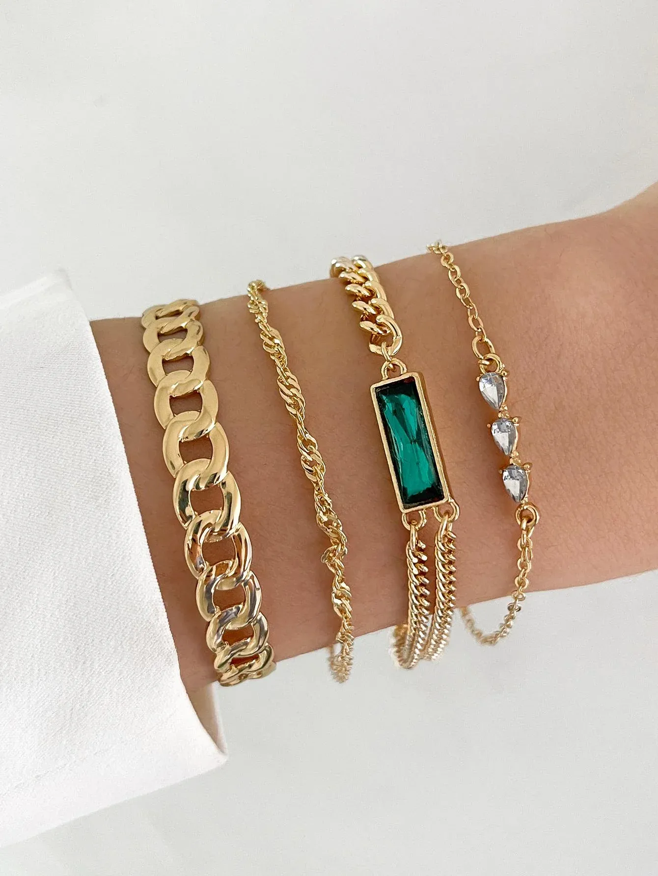 Rhinestone Heart & Triangle Decor Bracelet 4pcs/set