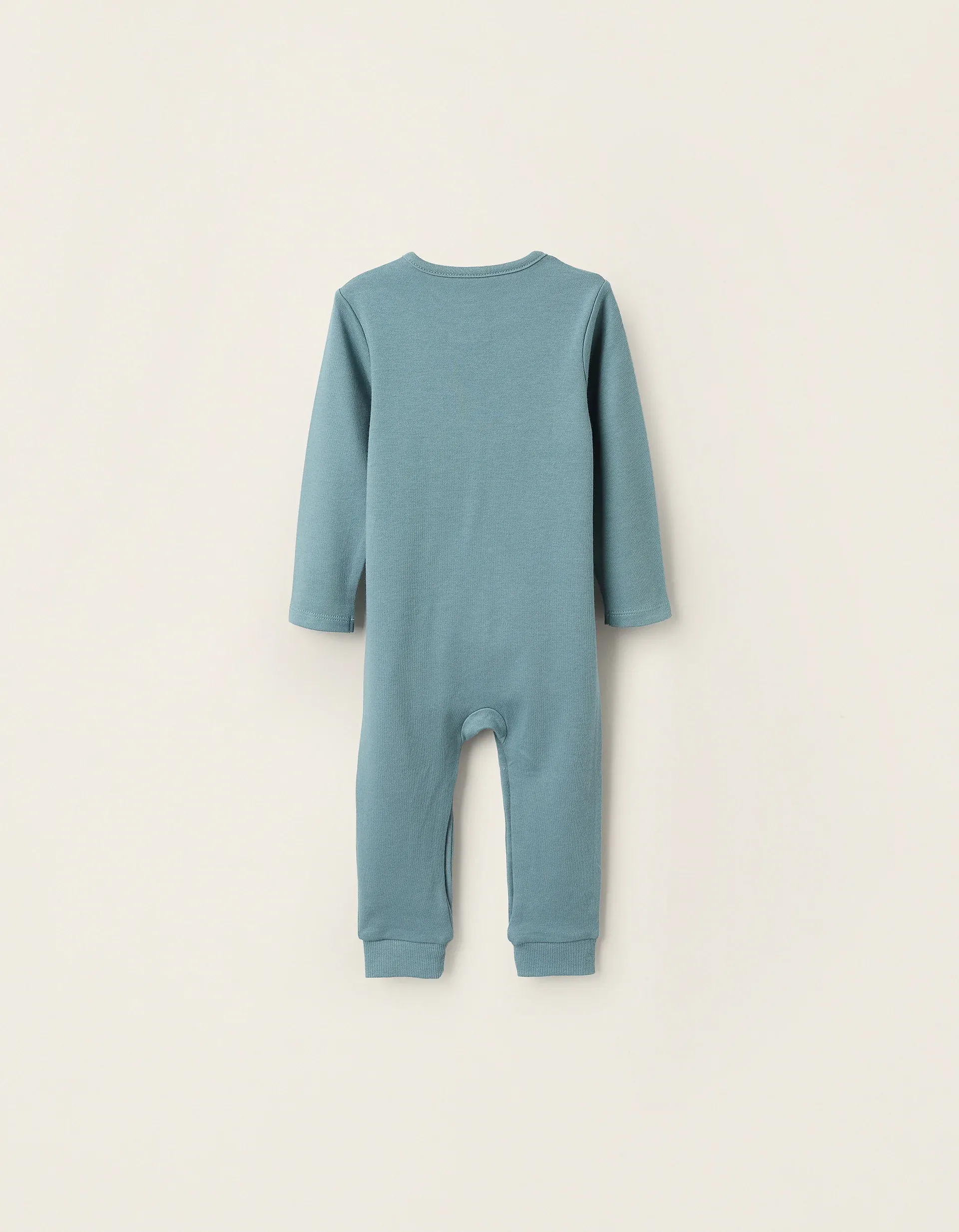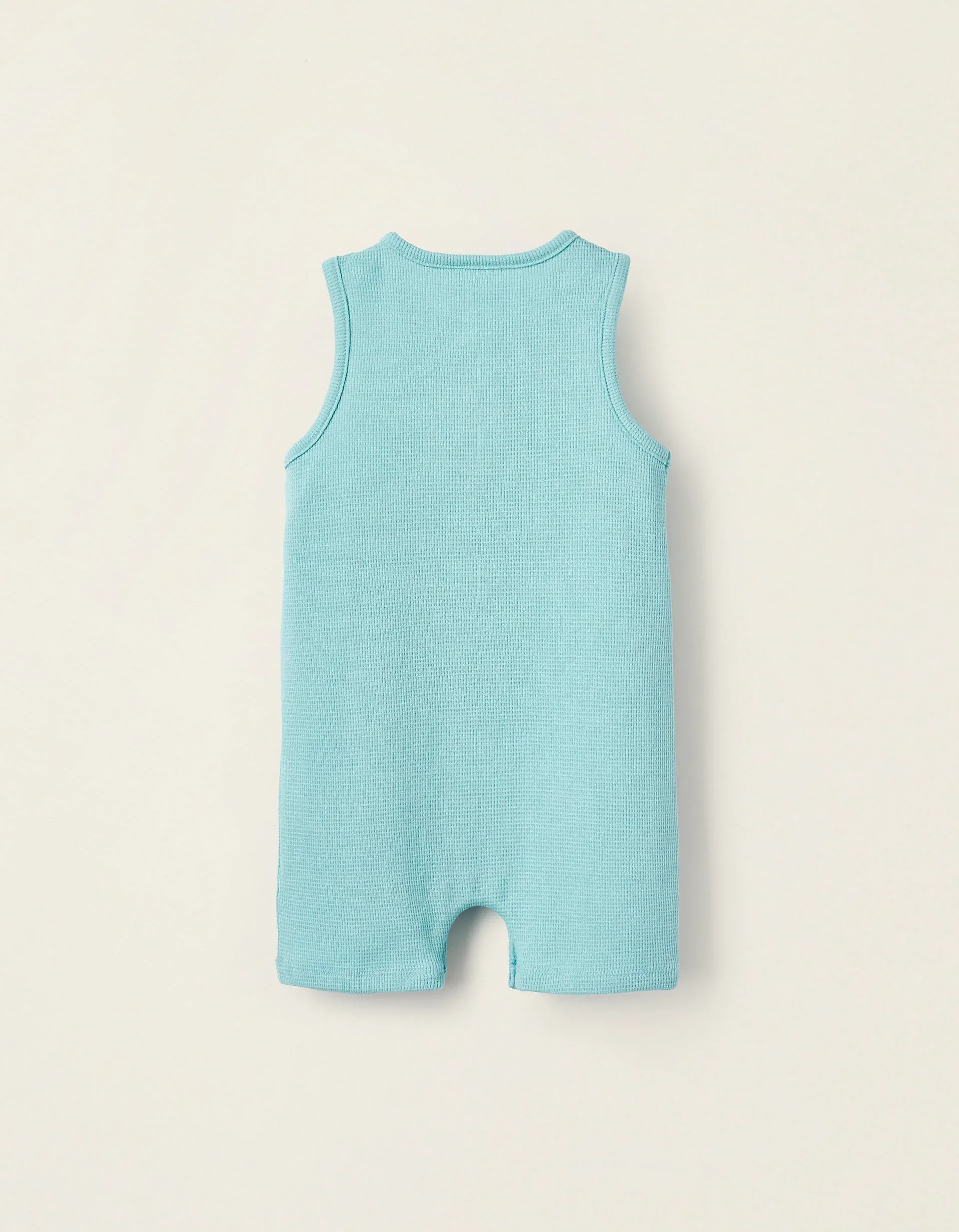 Romper Pyjamas in Pointelle Cotton for Baby Boys, Aqua Green
