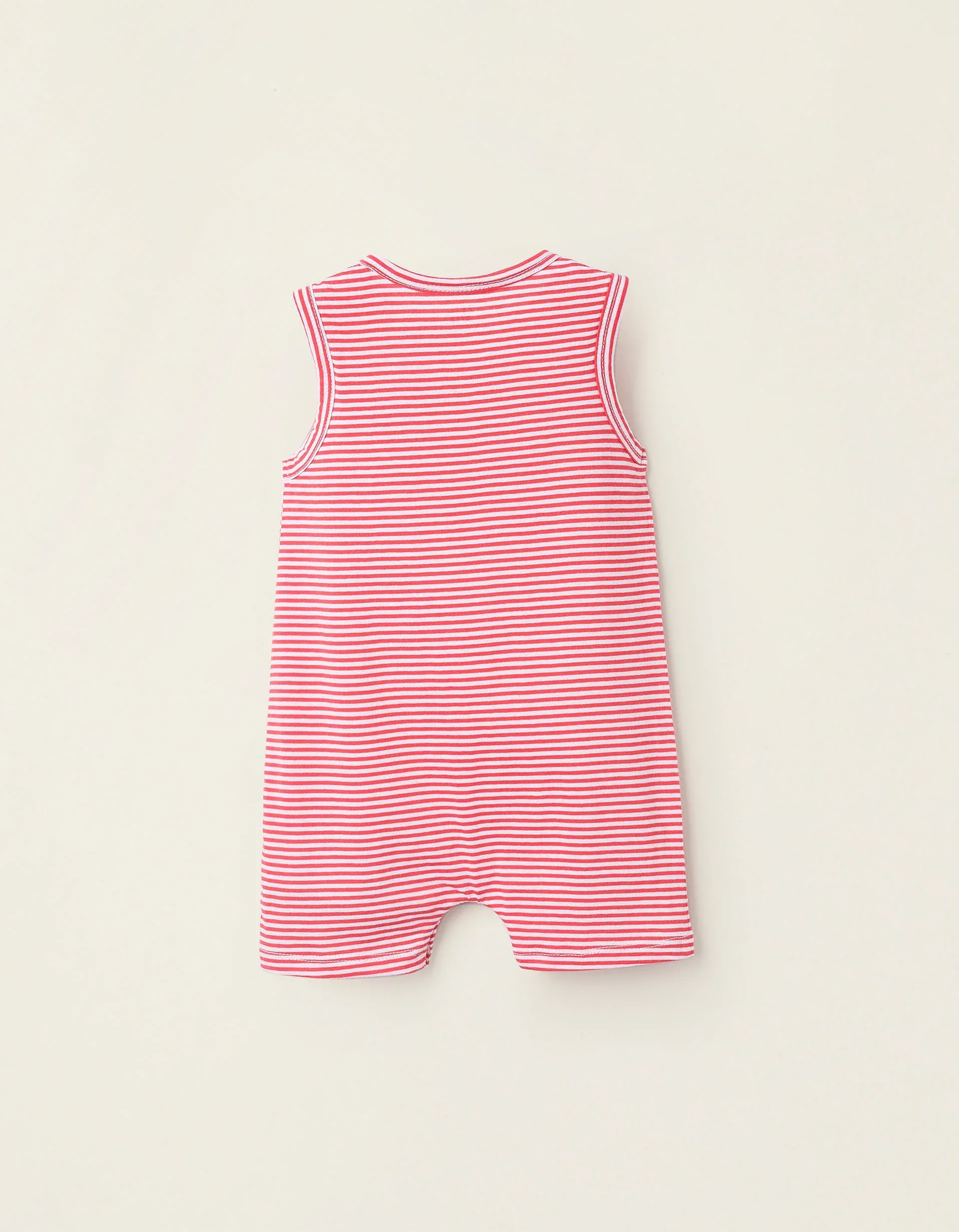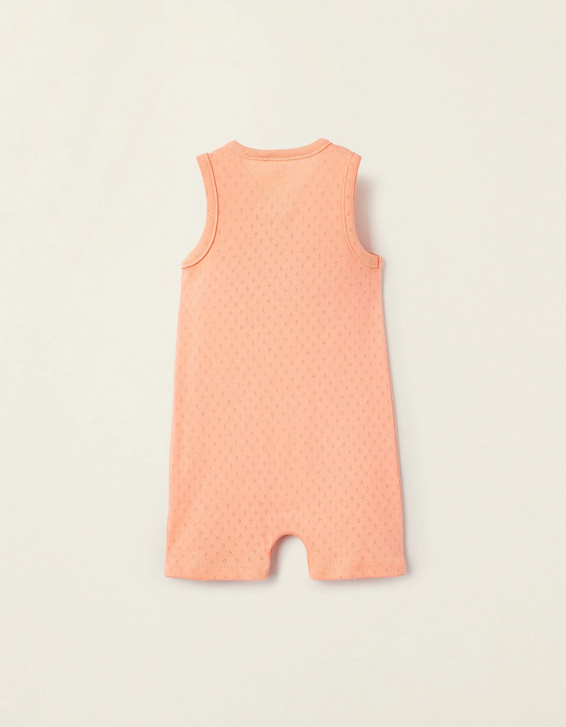 Romper Pyjamas in Pointelle Cotton for Baby Girls, Coral