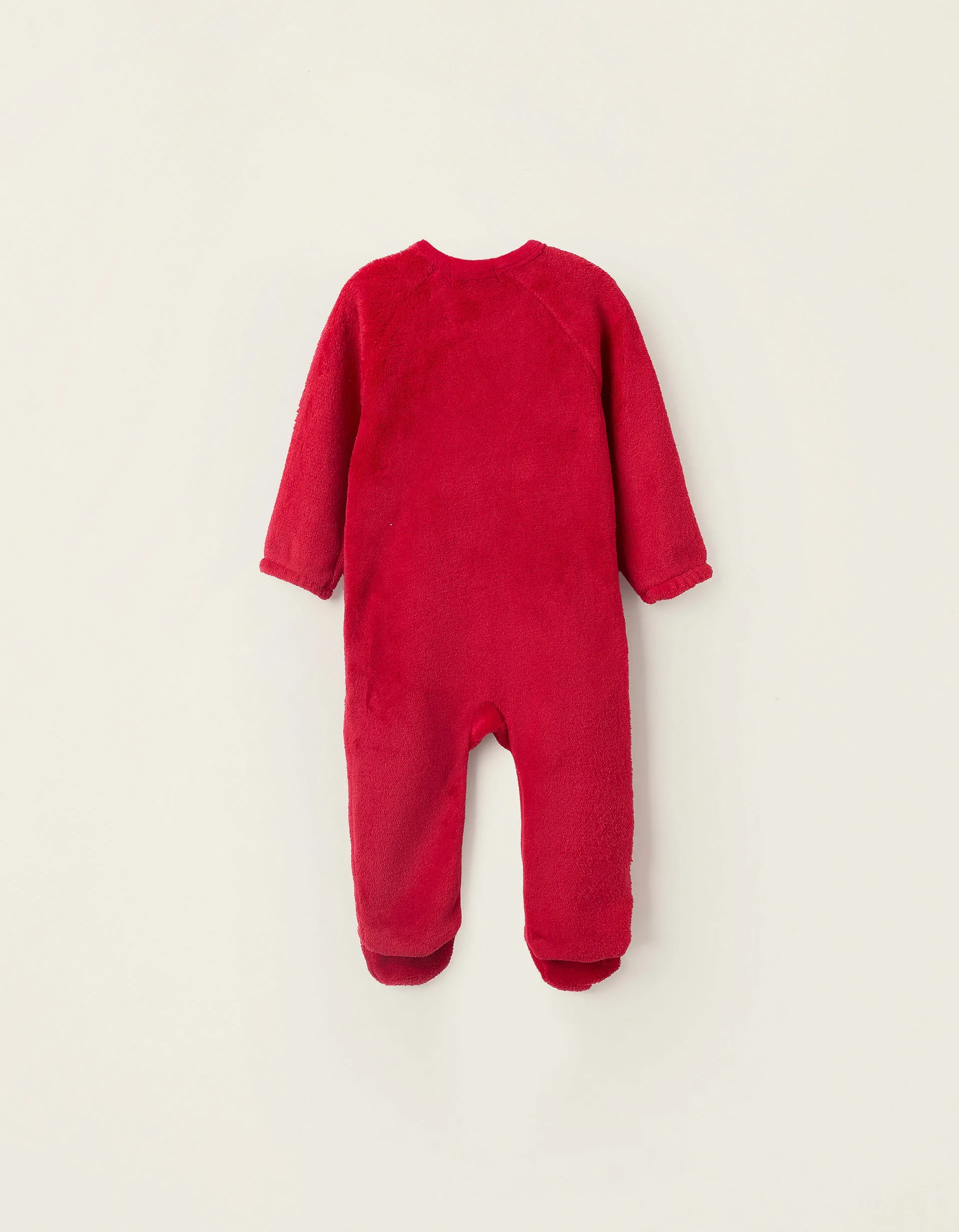 Plush Sleepsuit with Pom-Pom for Babies ‘Reindeer’, Red
