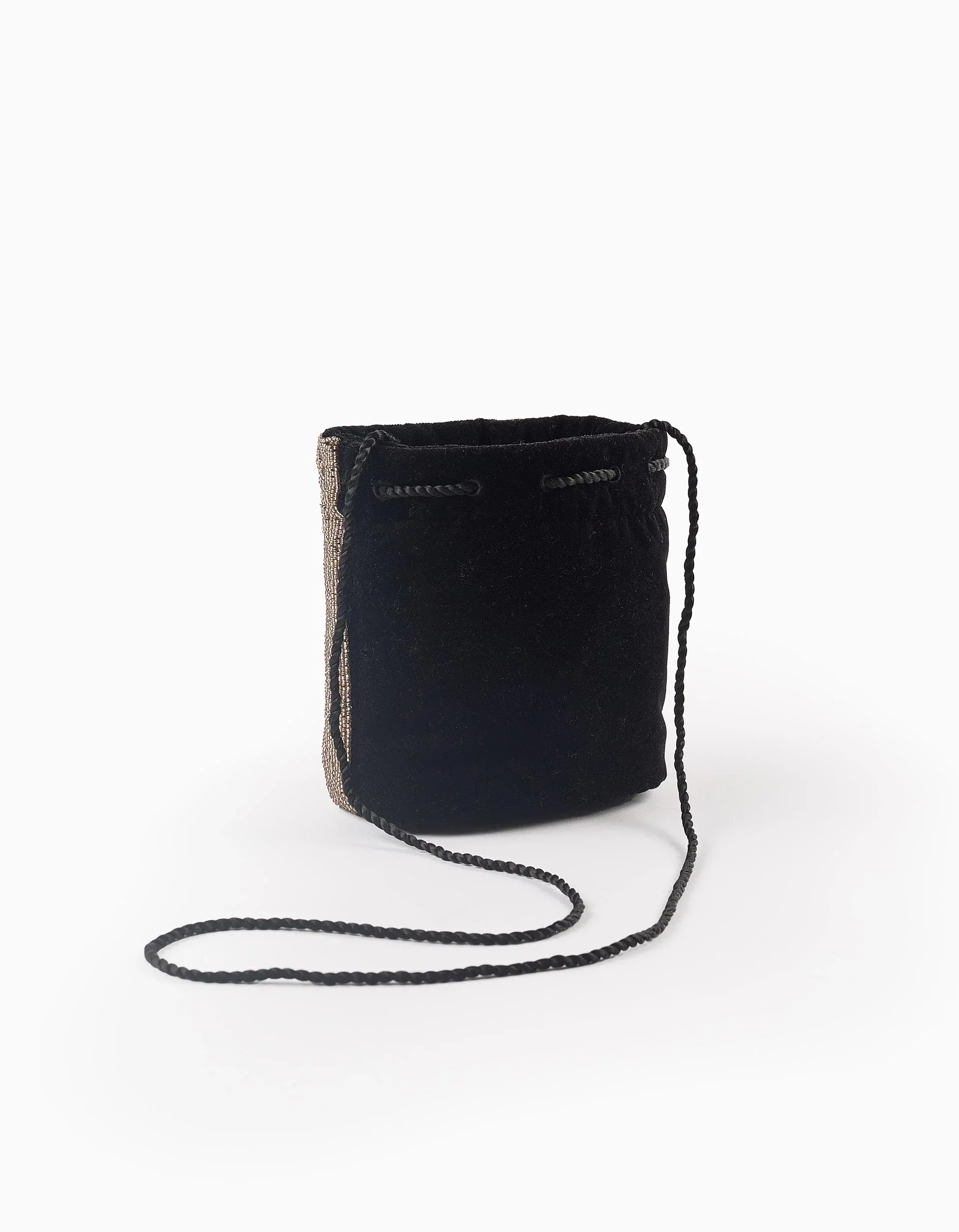 Velvet Crossbody Bag with Beads for Girls, Black/Gold