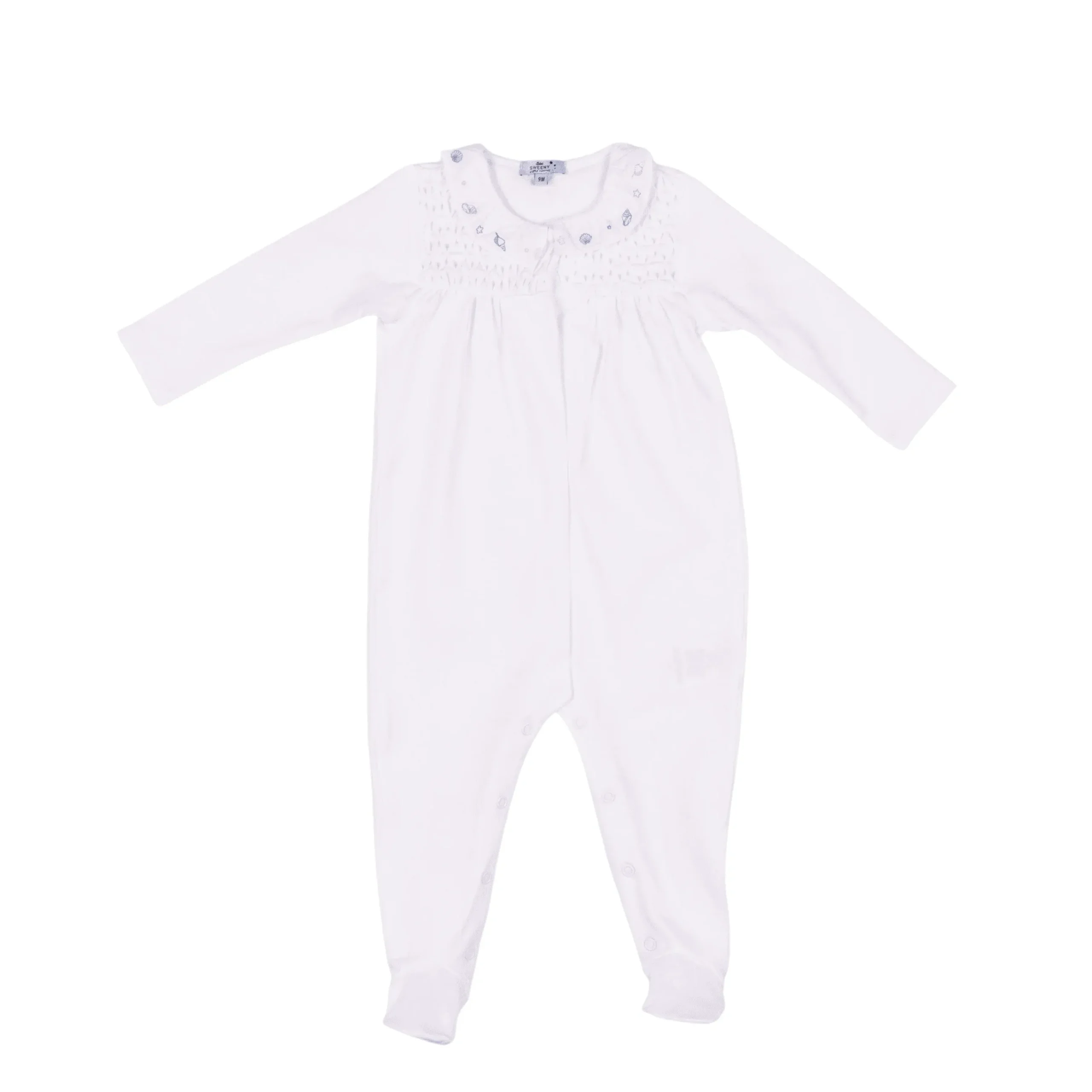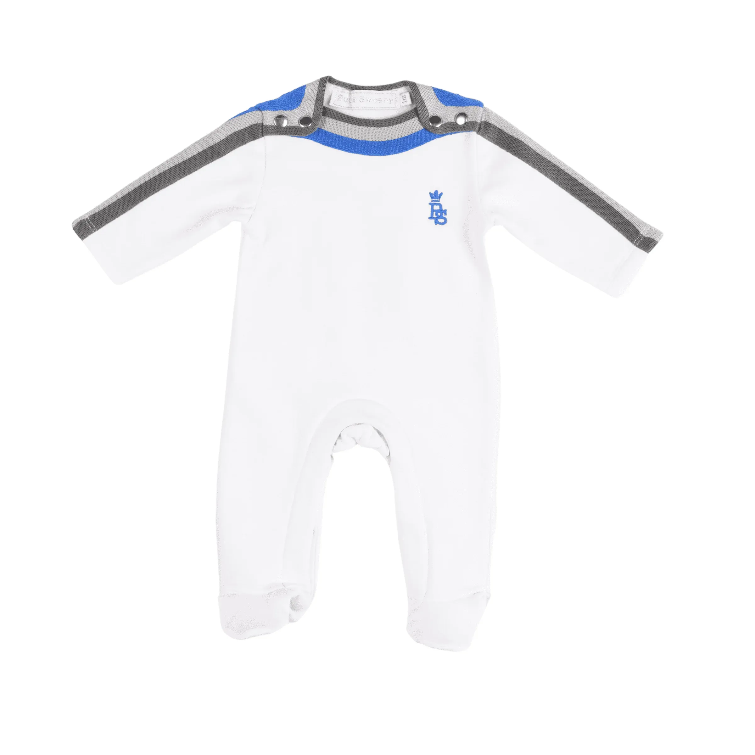 CALVIN | Boys White & Blue Striped Organic Cotton Babygrow