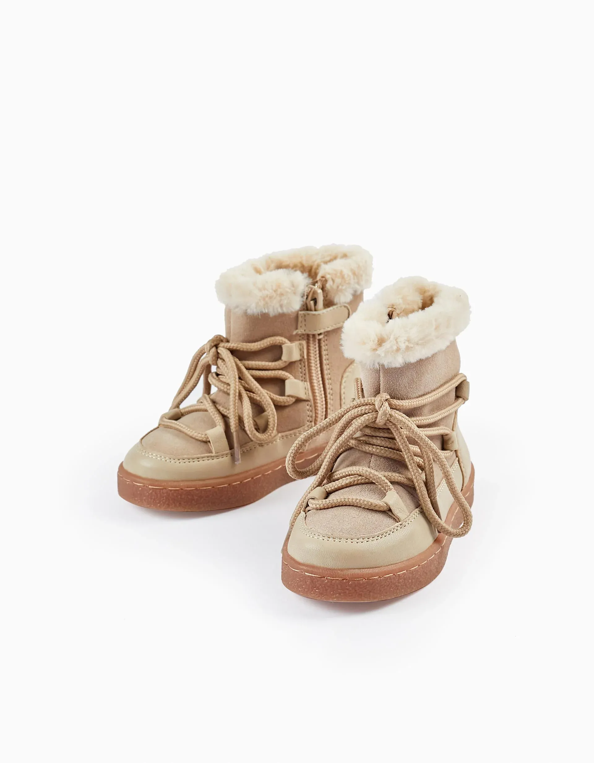 Leather and Fur Boots with Fur Lining for Babies, Beige