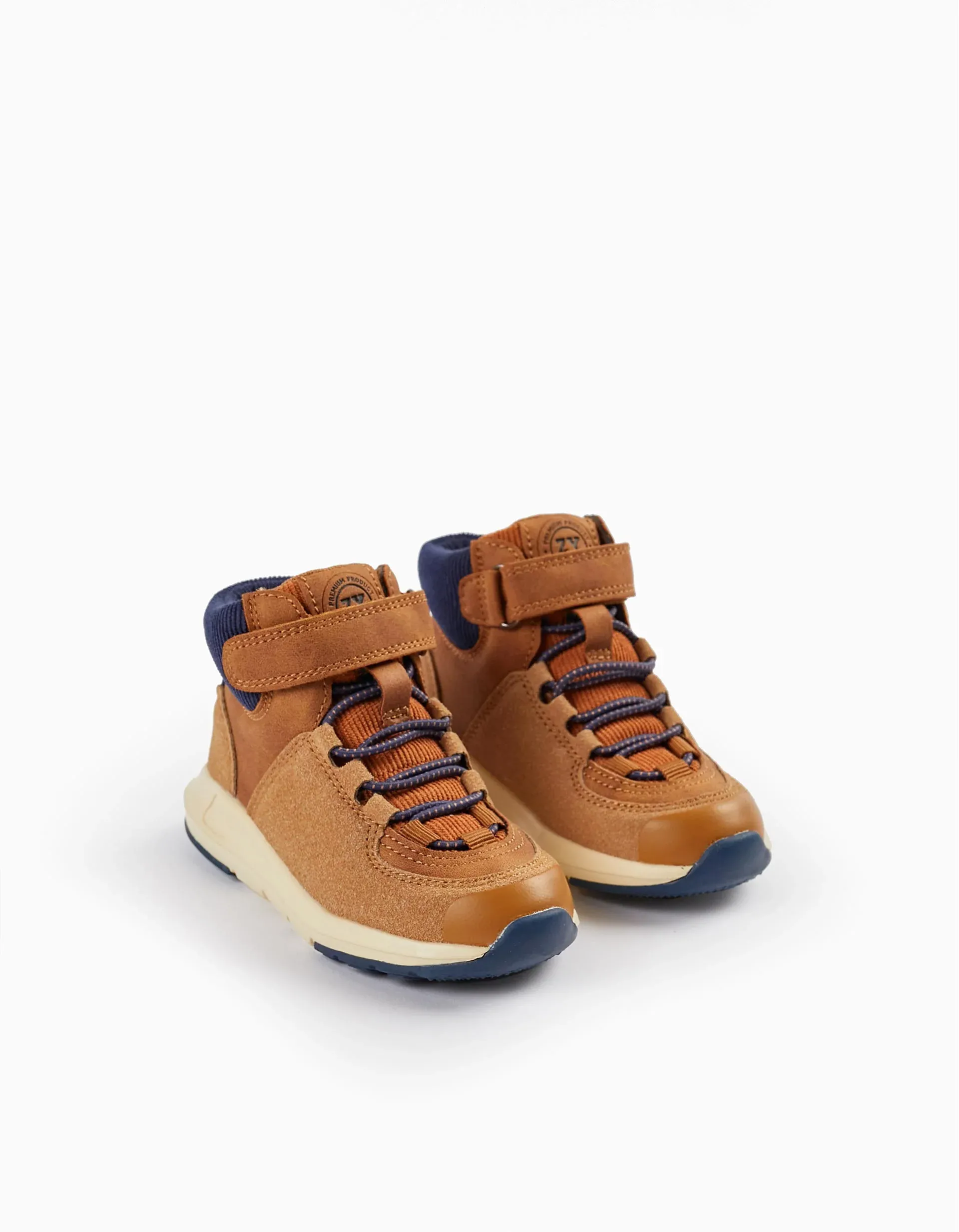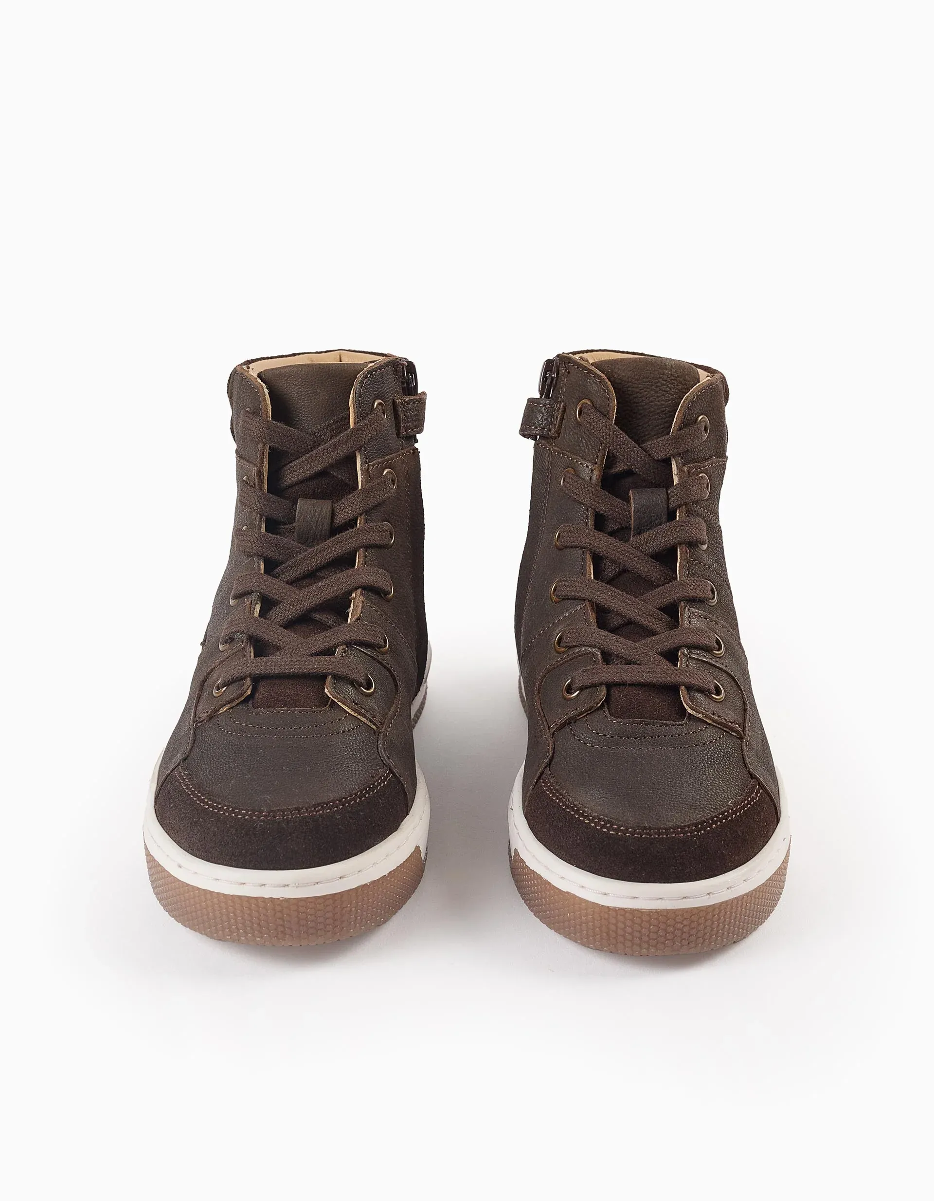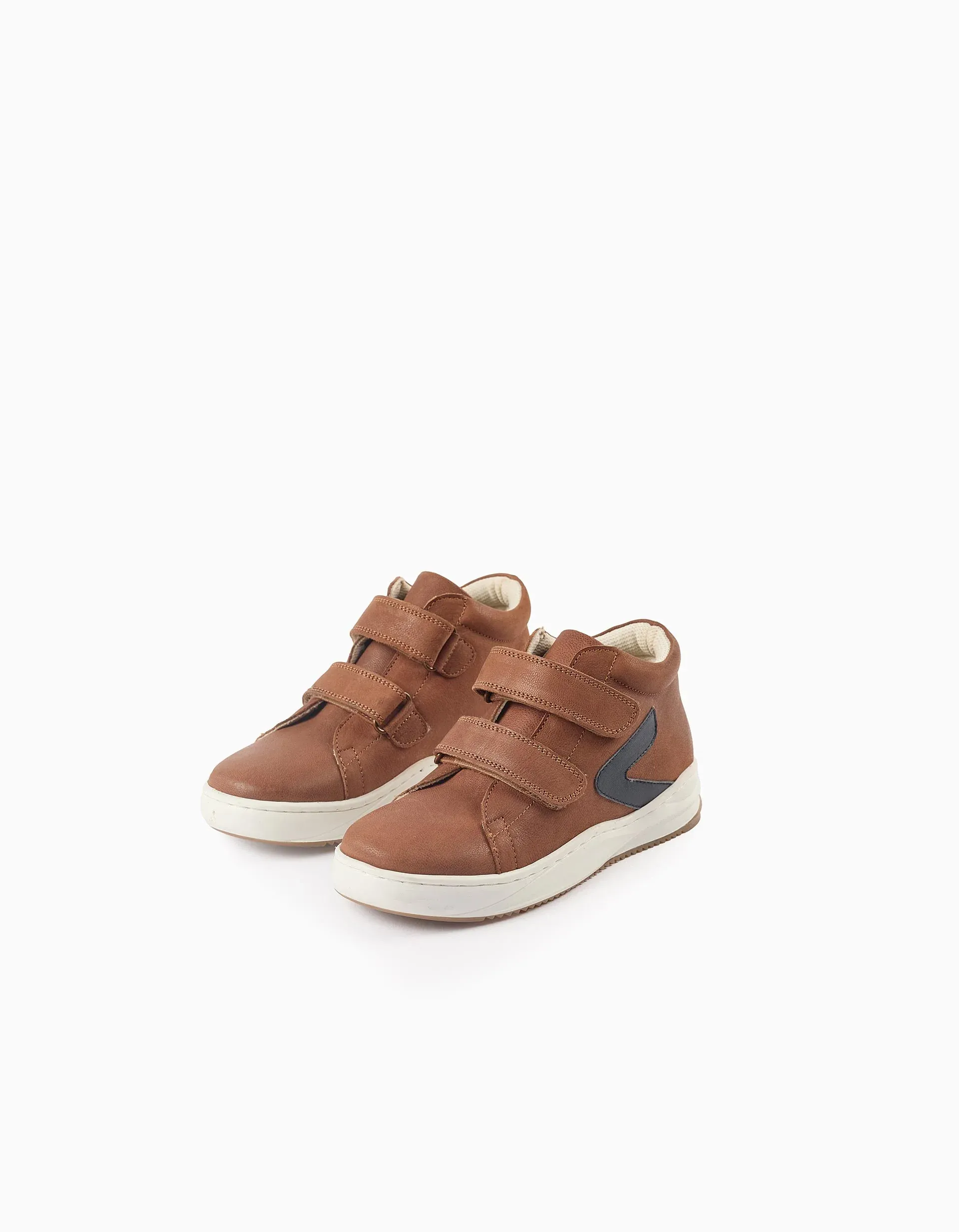 Leather Boots with Touch-fastening Straps for Boys, Brown