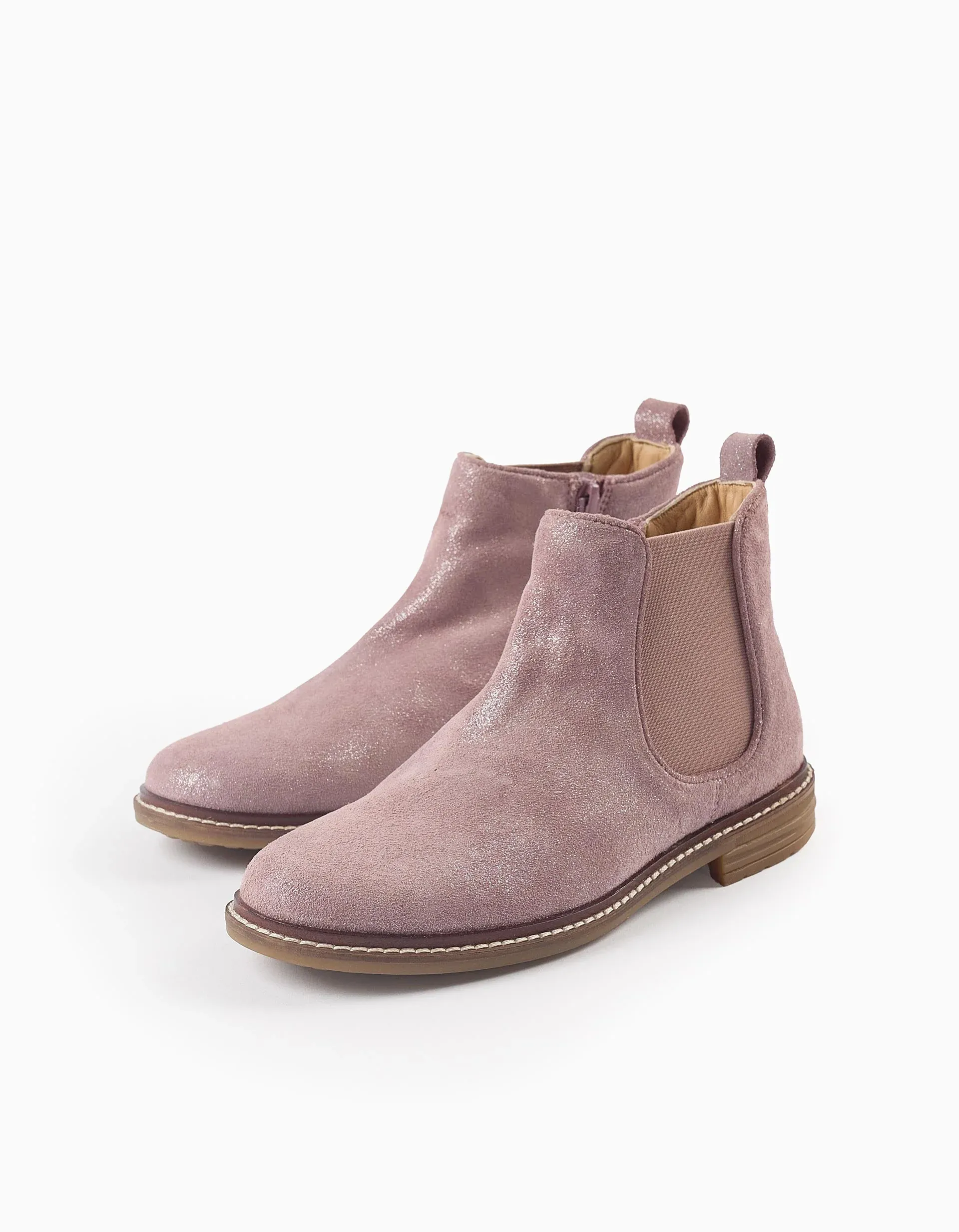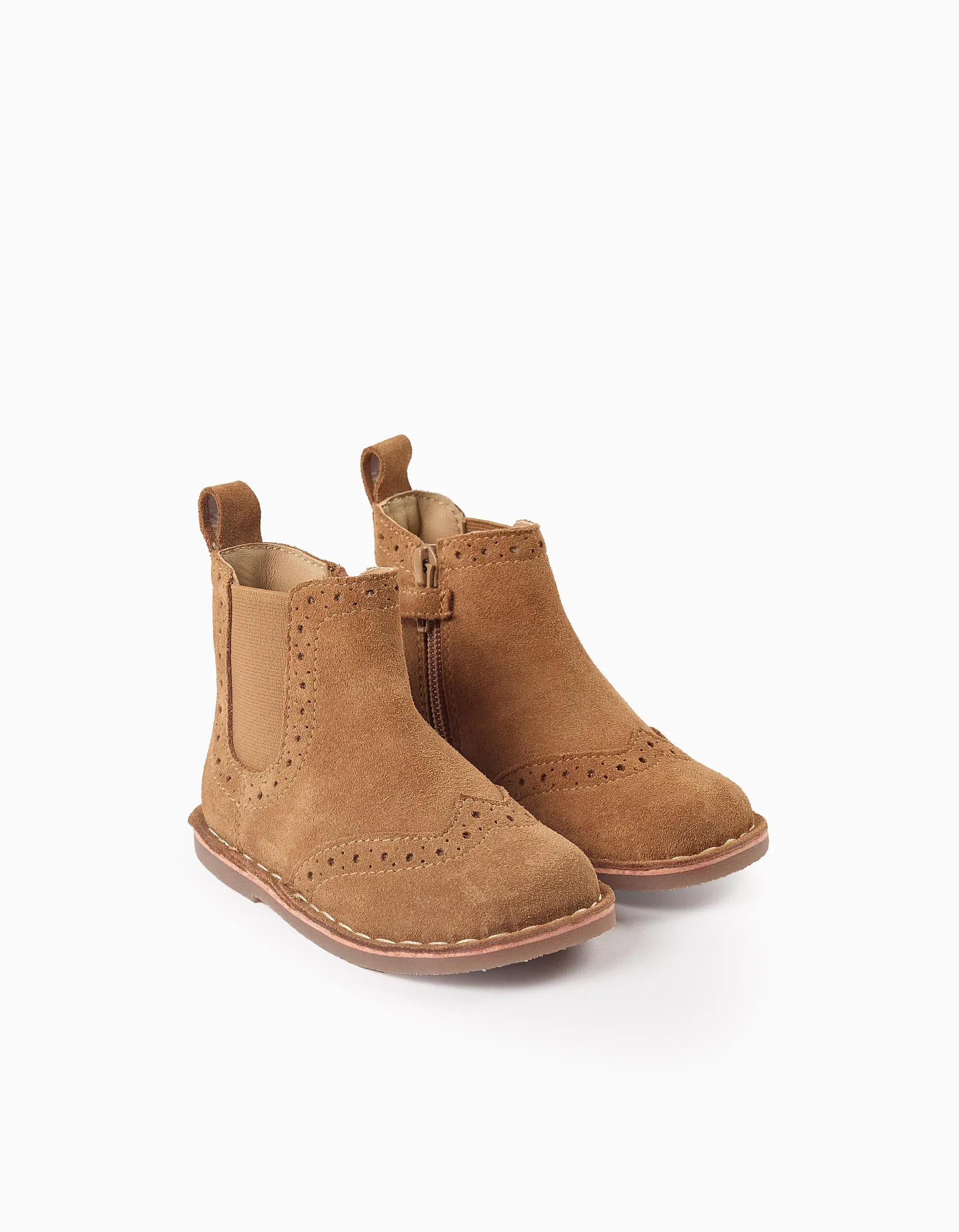 Leather Chelsea Boots in Suede for Baby Girls, Camel