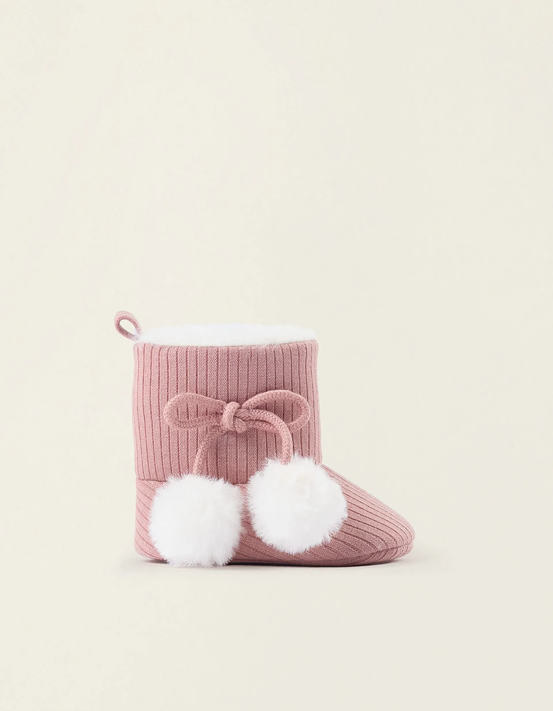 Ribbed Boots with Faux Fur Lining for Newborn Girls, Pink