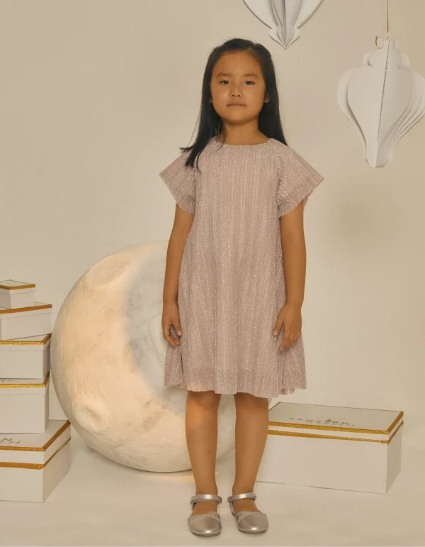 Pleated and Lurex Dress for Girls, Lilac/Silver