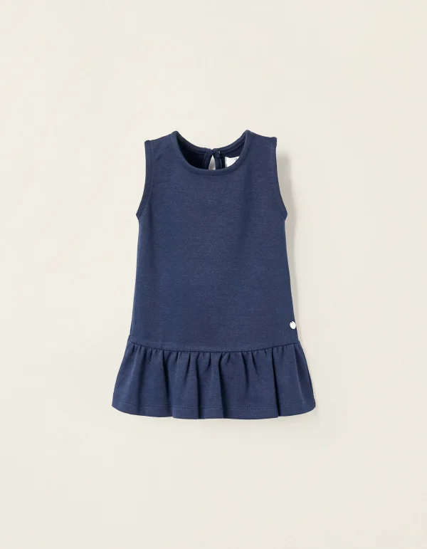 Knit Roma Stitch Dress for Newborn Girls, Dark Blue