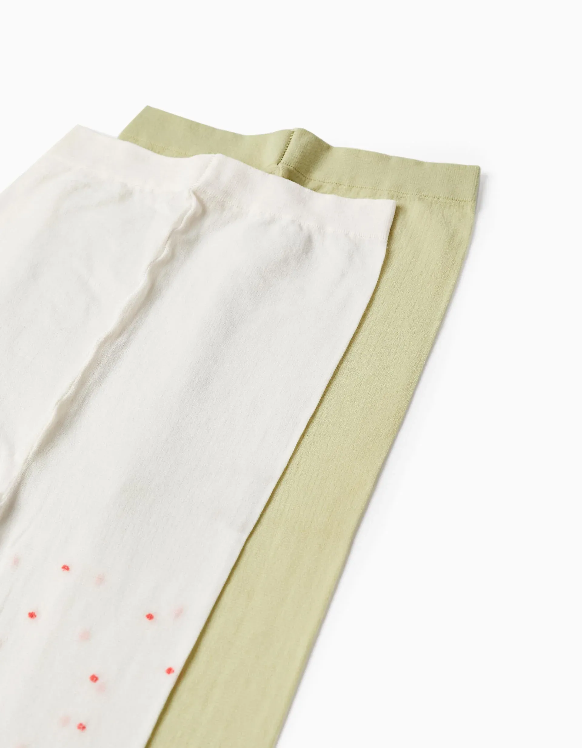 Pack of 2 Pairs of Tights for Girls, Green/Light Pink