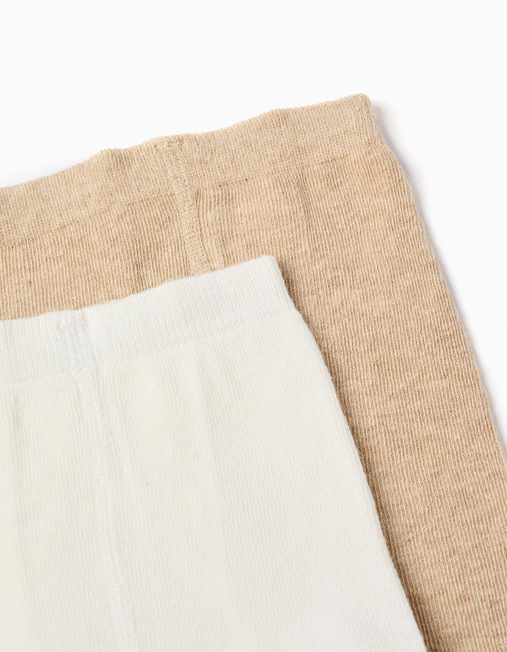 Pack of 2 Plain/Ribbed Tights for Baby Girls, Beige/Green