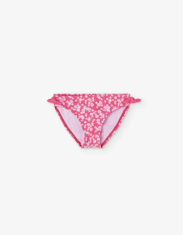Bikini bottom with floral pattern in beige and green for baby girls, with wavy edges. Swimsuit with decorative knots on the sides. With lining, for greater comfort. For a summer with colour and style!