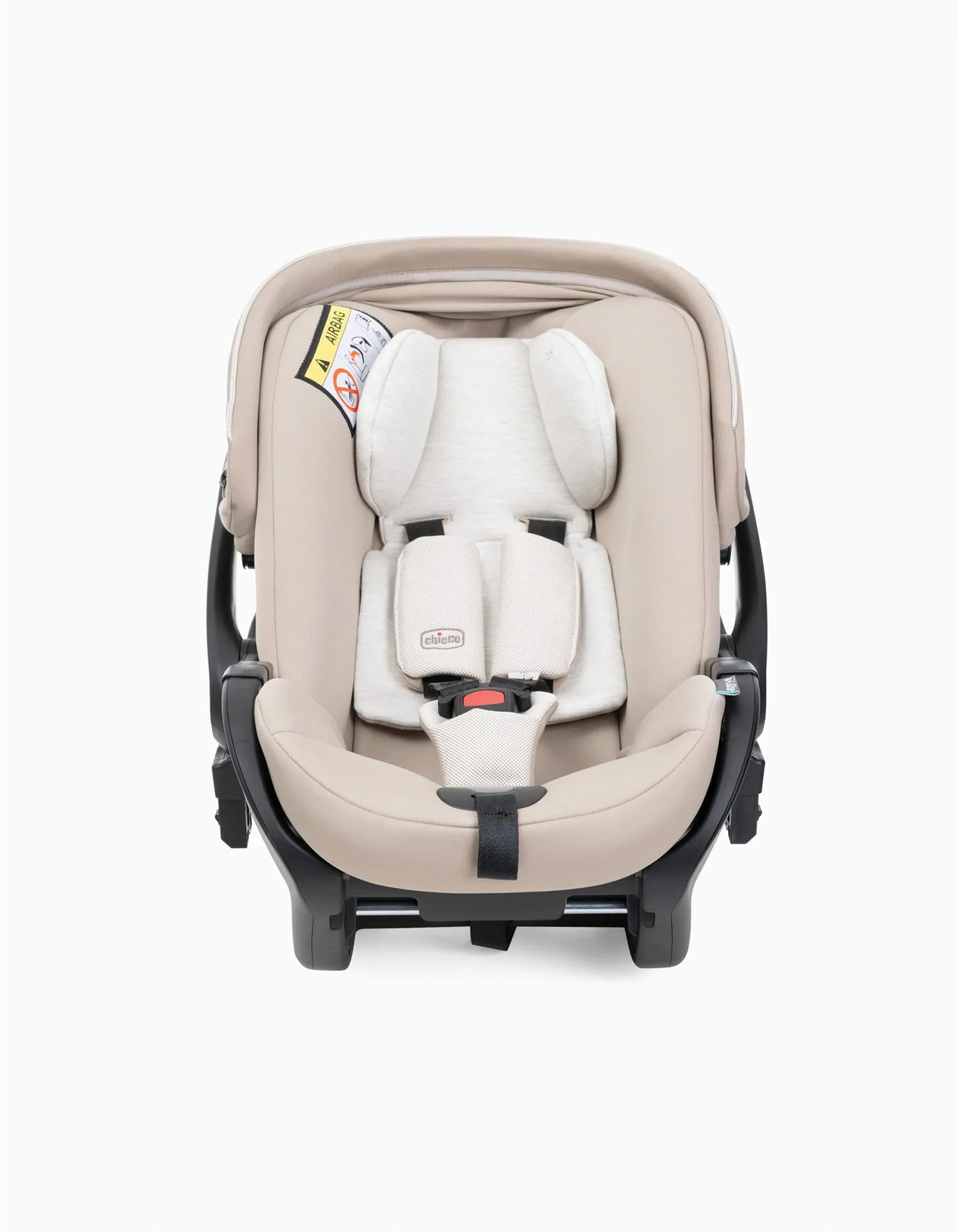 I-Size First Seat Recline car seat from Chicco, suitable for babies between 40 and 87 cm, that is, from birth to 15 months, approximately. The car seat can be installed in two ways, always in the rear-facing position: using the Full 360 i-Size base with Isofix connectors and support leg (sold separately); or with the car’s 3-point seat belt. It includes a 360º rotation system when used in conjunction with the Full 360 i-Size base (not included) to facilitate placing the child in the car. It also offers 3 reclining positions for greater comfort for the baby; adjustable headrest that follows the baby’s growth; 5-point harness; energy-absorbing reducer, made of soft and breathable bamboo fibers; adjustable handle in various positions; extendable XXL canopy with water-repellent treatment, UV50+ protection, and mesh window for air circulation. Compatible with Mysa, Bellagio, Goody XPlus One4Ever, and Activ3 strollers (with adapters); and with Best Friend Pro and Seety models (without adapters). It can also be used at home as a fixed or rocking chair (in accordance with EN 12790-1:2023 standard) and on the plane (YUV certified). Approved according to European Standard ECE R129/03 (i-Size).