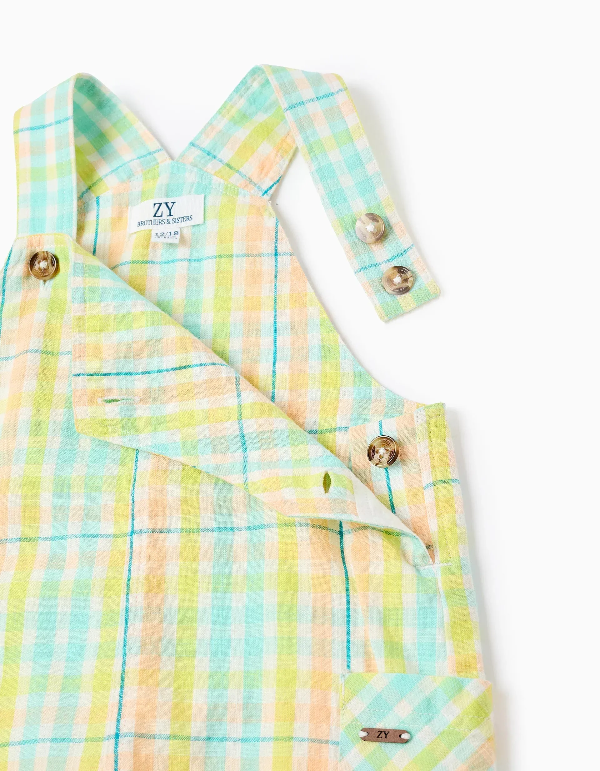 Brothers & Sisters Collection. Checked jumpsuit in shades of yellow, orange, and blue for baby boys. 100% cotton. Adjustable straps. Cargo pockets. Lined for added comfort. A colourful jumpsuit to wear with the family!