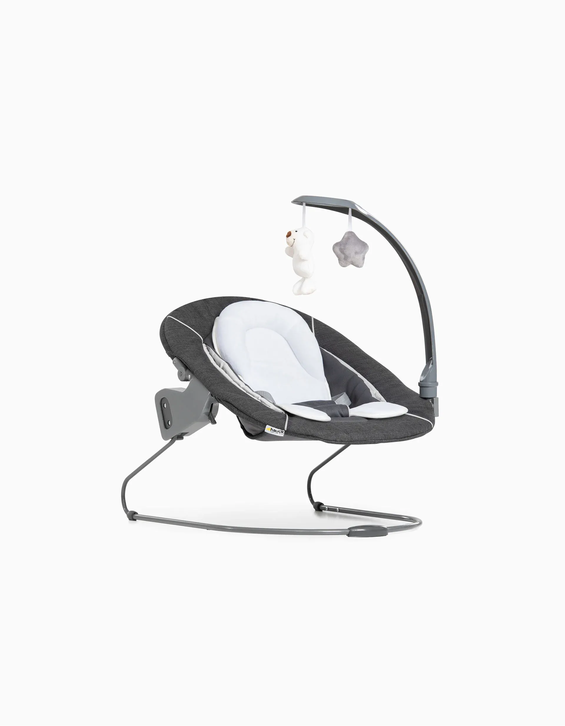 Ergonomic, padded highchair, suitable from birth to 9kg. It can easily be applied to Hauck’s Alpha+ highchair, leaving it in an elevated and practical position for family activities and routines. The included seat reducer supports the head and the additional padding on the sides ensures maximum comfort. The backrest is adjustable. The high chair’s elevated position is comfortable for parents when feeding their baby. Includes an arch with toys to stimulate baby’s motor skills. The 3-point harness ensures safety. To use it as a rocking chair, simply insert the lounger into the base provided and baby’s movements will gently rock it. Buy the Alpha Bouncer Deluxe and the Alpha+ wooden highchair together and use them from baby’s first day. Approved according to EN 71-1:2018 and EN 12790:2009. Weight: 2.7kg. Dimensions: 65X47X69cm.