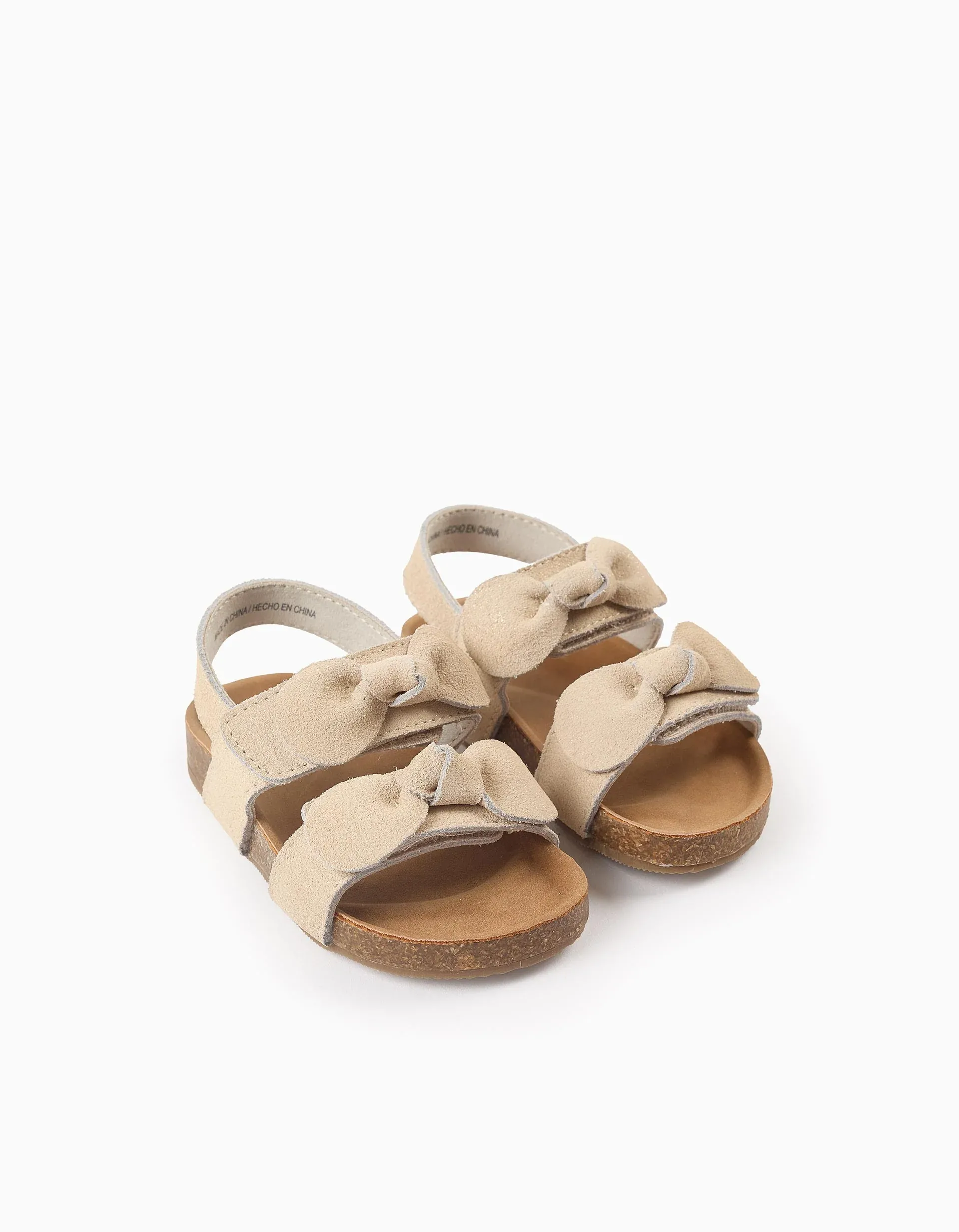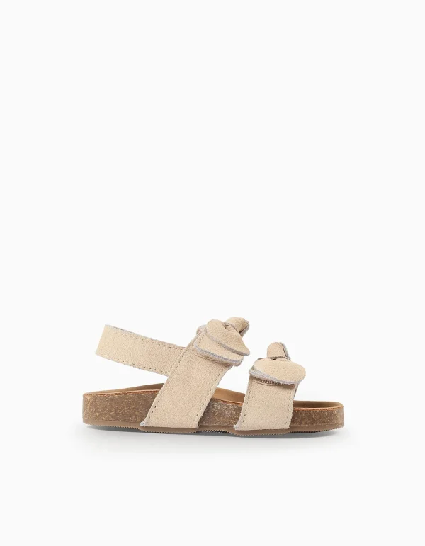 Dark blue suede sandals for baby boys, with touch fastener straps so they are easy to put on and adjust. Leather insole with anatomical design. Rubber sole with cork interior. A classic and timeless model.