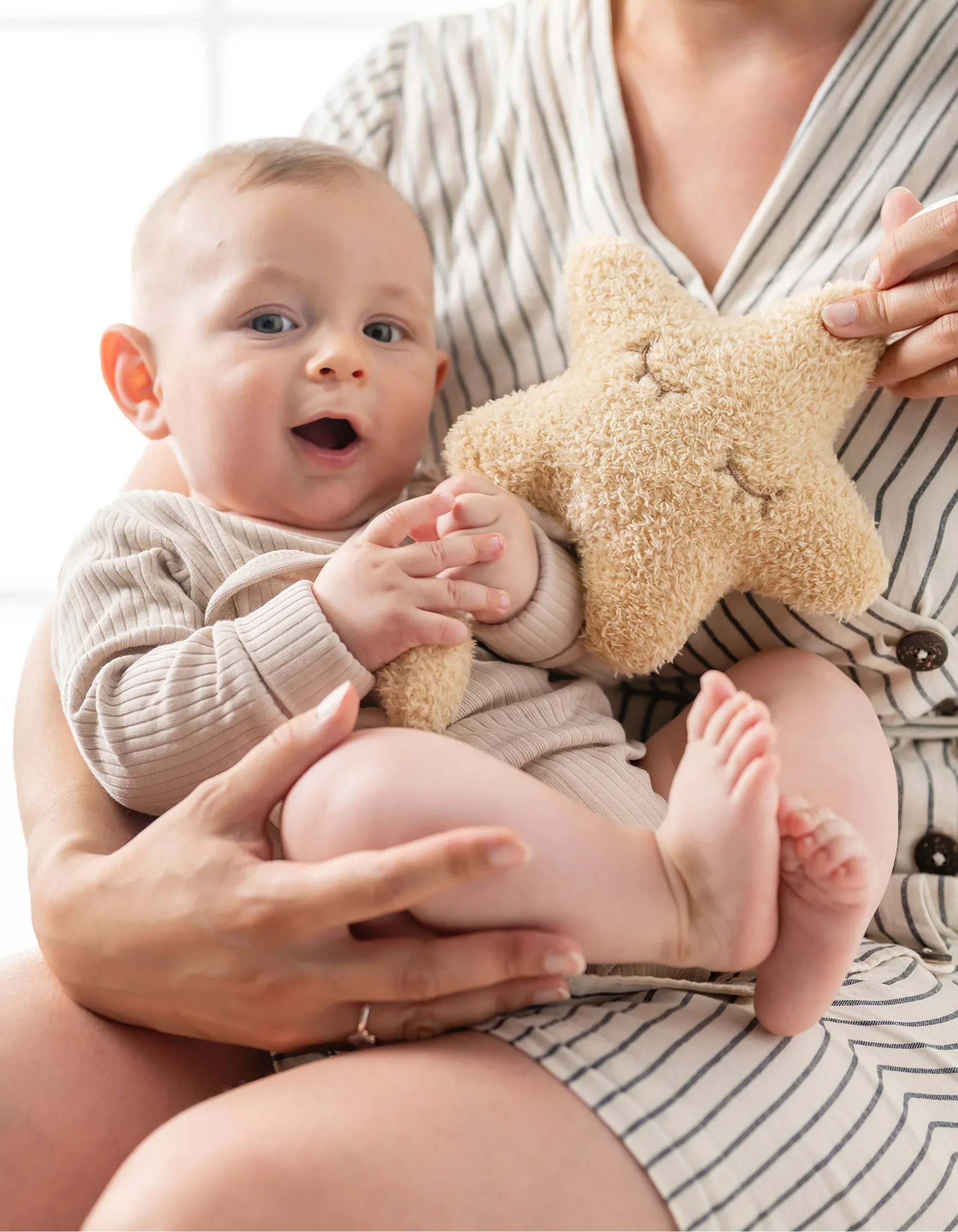 Toy star with music by Nattou! This adorable musical toy comes with a built-in music box to surprise your baby with a gentle melody. To activate the music, simply pull the string. Equipped with straps for attaching to a cot, chair or pram. Hand washable. An excellent gift idea! Dimensions: 20x19x6 cm