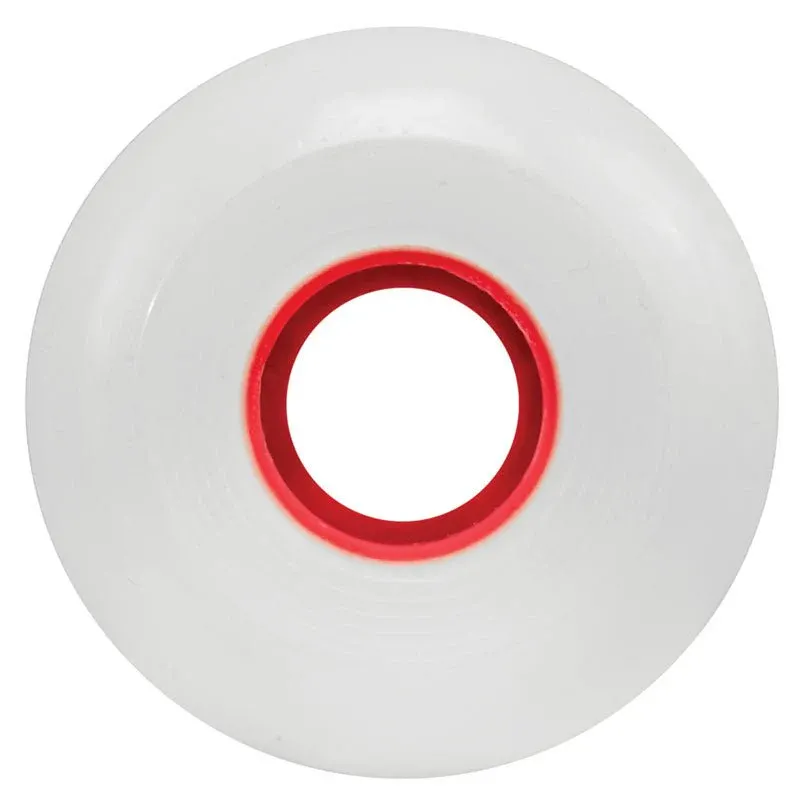 Ricta Wheel Dynamics 57mm Clouds Red 86a white, red core, debossed and pad printed lettering. Medium-soft urethane for filmer setups, skating ditches and rougher terrains.