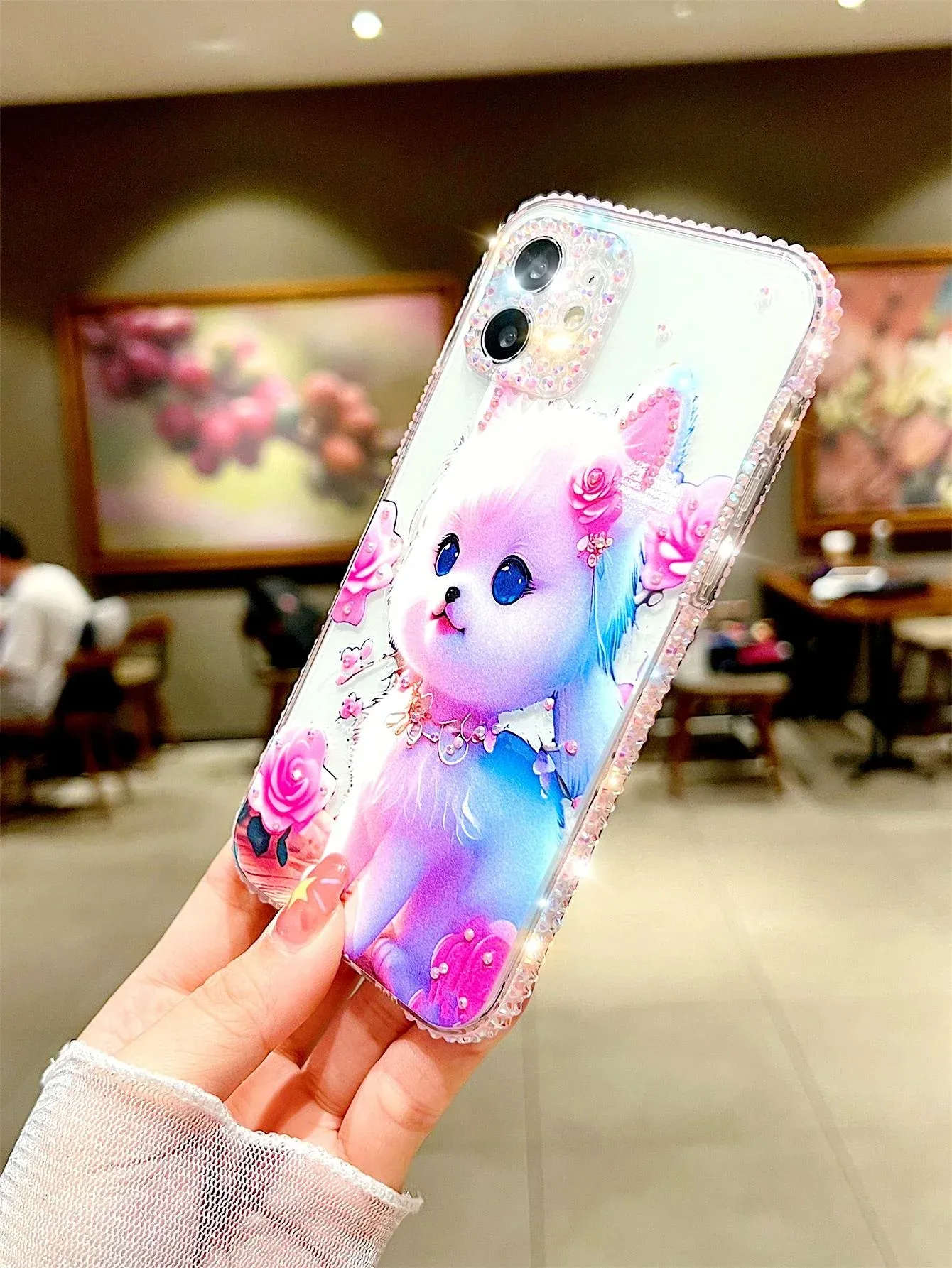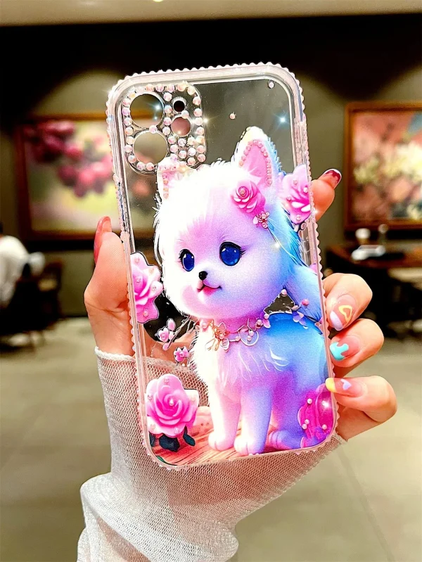 Cat Pattern Rhinestone Decor Phone Case Kawaii